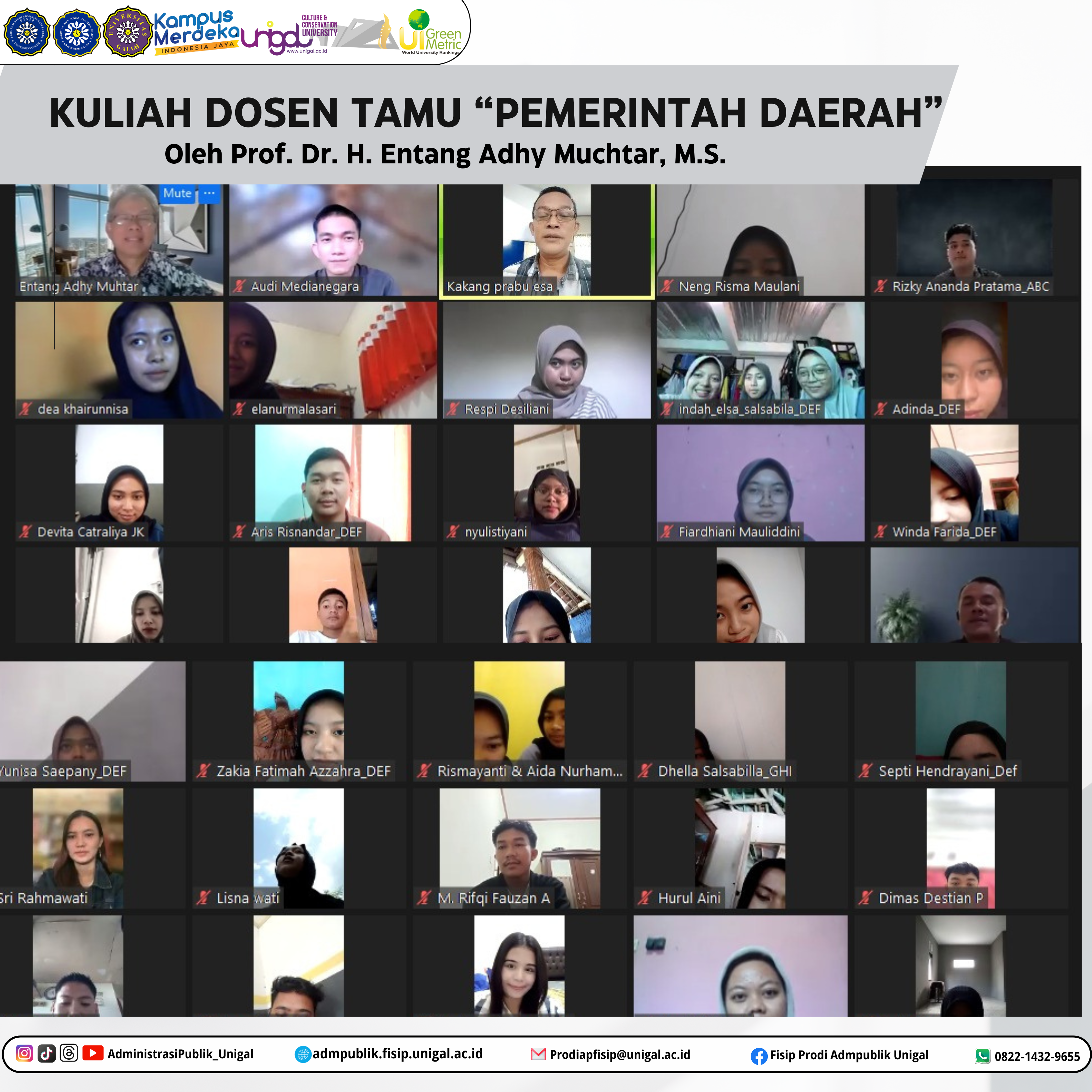 Kuliah Dosen Tamu "Pemerintahan Daerah" Oleh Prof. Dr. Entang Adhy Muchtar, M.S.